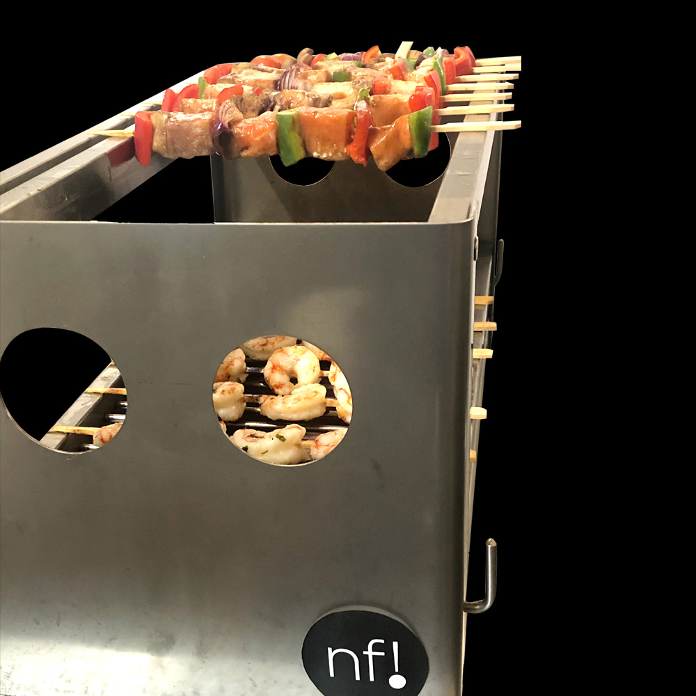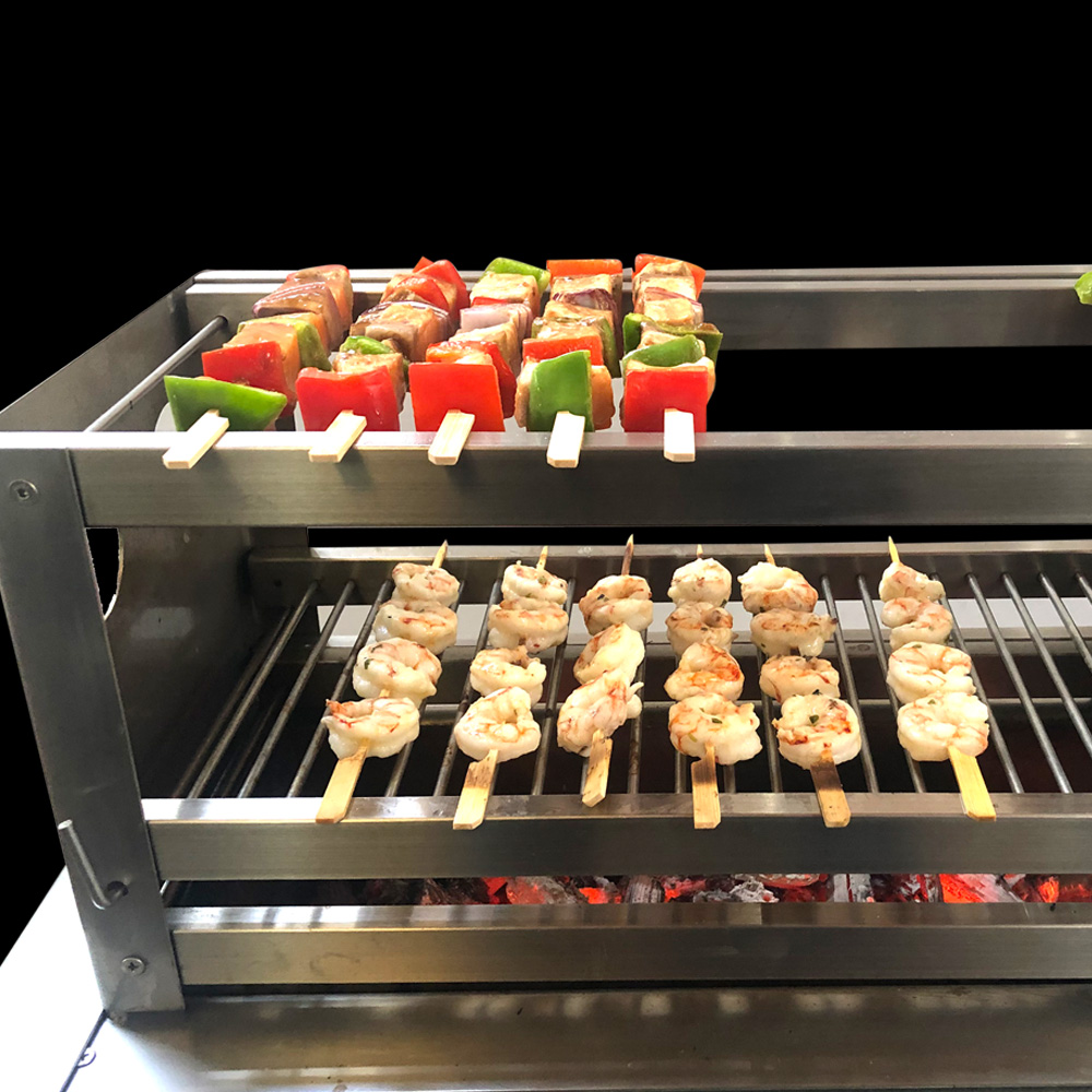 El Robatagrill RBT es una parrilla al carbón para cocinar con la tradición culinaria oriental. Ideal con todo tipo de carnes, pescados y verduras que se asan en pequeñas porciones colocadas en brochettes sobre las brasas. Con el grill de varillas redondas y posibilidad de distintas alturas, le permitirán cocinar nuestros tradicionales cortes de carnes. El nombre Robata deriva de Robatayaki, una antigua técnica de asar de la cocina japonesa realizada en vivo frente a los comensales. Construido íntegramente en Acero Inoxidable de alta calidad 18/8.